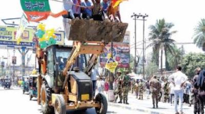 7 Apr, 2026 09:00 PM ISTचुनावी मैदान में अनोखा अंदाज, बुलडोजर लेकर पहुंचे प्रत्याशी