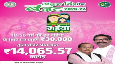 Jharkhand Budget 2026 में राज्य की महिलाओं पर खास फोकस किया गया है। विधानसभा सत्र 2026-27 में पेश बजट में Maiya Samman Yojana के लिए ₹14,065.57 करोड़ का प्रावधान रखा...