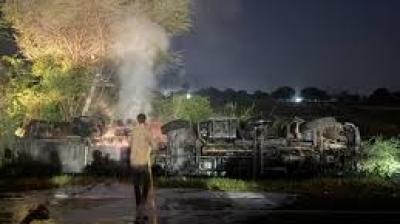 दौसा। जिले में शुक्रवार रात जयपुर-आगरा राष्ट्रीय राजमार्ग पर एक केमिकल से भरा टैंकर पलट गया। हादसे के बाद टैंकर में आग लग गई, जिससे हाइवे और आसपास के इलाके...