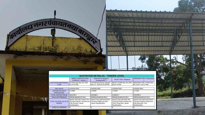 प्राप्त जानकारी के अनुसार, नगर पंचायत द्वारा डोम शेड निर्माण कार्य के लिए निविदा आमंत्रित की गई थी. टेंडर की शर्तों के अनुसार ठेकेदारों से आवश्यक दस्तावेज ऑनलाइन एवं ऑफलाइन दोनों माध्यमों से जमा करने को कहा गया था. टेंडर की तिथि 1 जनवरी 2026 निर्धारित की गई थी, जिस दिन सभी ठेकेदारों की उपस्थिति में निविदा खोली जानी थी.