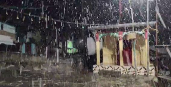 टिहरी के सीमांत गंगी गांव में बर्फबारी: जहां एक तरफ पहाड़ों में गर्मी से तापमान बढ़ गया था तो वहीं दूसरी तरफ अचानक मौसम में परिवर्तन हुआ है. जिससे अचानक बारिश के साथ बर्फबारी शुरू हो गई. टिहरी जिले के सीमांत एवं दूरस्थ गंगी गांव में भी बर्फबारी हो रही है. जिससे मौसम ठंडा और खुशनुमा हो गया है.