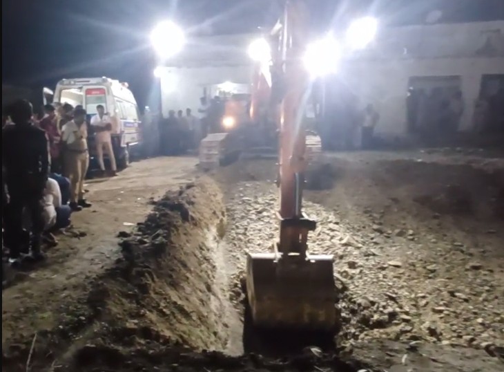 बोरवेल के समानांतर खोदा गया 70 फीट गहरा गड्ढा
