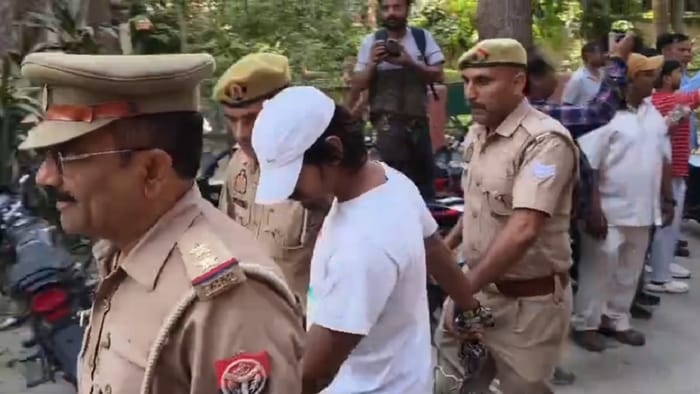 मेरठ मर्डर केस: 110 मिनट तक साथ रहे प्रेमी साहिल और मुस्कान, कोर्ट ले जाते समय हुई मुलाकात।