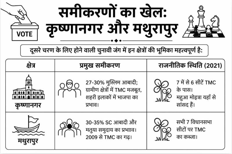 बंगाल में 29 अप्रैल को दूसरे चरण का मतदान होना है, जिसमें 142 सीटों पर फैसला होगा। यह चरण सत्ताधारी तृणमूल कांग्रेस (TMC) के लिए अग्निपरीक्षा माना जा रहा है, क्योंकि 2021 के चुनाव में पार्टी ने इन 142 में से 114 सीटें जीती थीं। विशेष रूप से, मुख्यमंत्री ममता बनर्जी की अपनी सीट भवानीपुर पर भी इसी चरण में मतदान होगा।