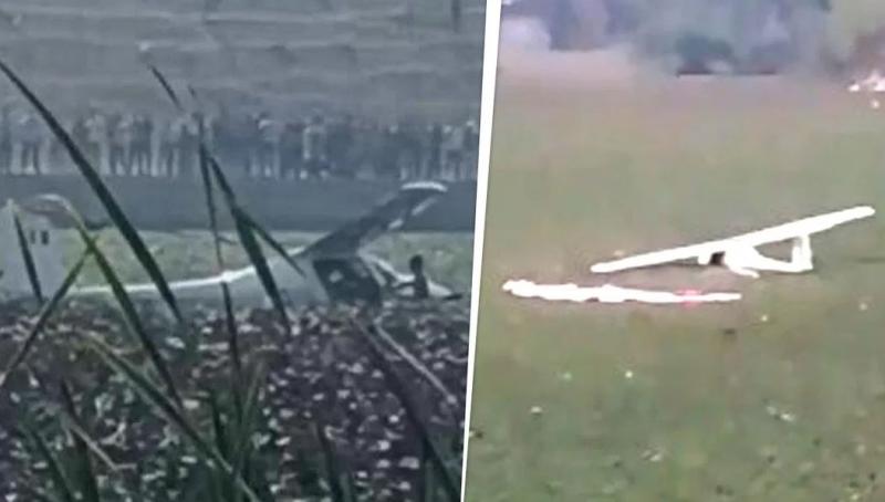 ट्रेनी विमान क्रैश, तालाब में गिरा