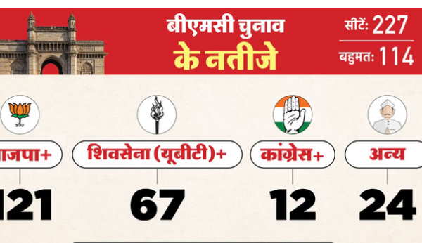 BMC रुझान: BJP+ को स्पष्ट बहुमत, 121 सीटों पर बढ़त
